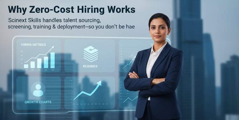 Scinext Skills delivers trained, verified, job-ready talent through our Hire–Train–Deploy model for BFSI, IT, BPO, Sales, and allied sectors.