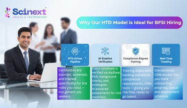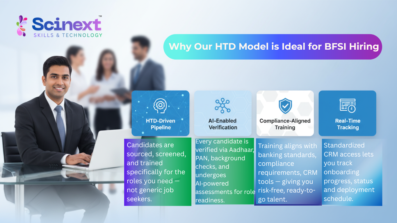 Scinext is actively managing large‑scale hiring and training operations for BFSI clients across India under the same HTD model. Our results: